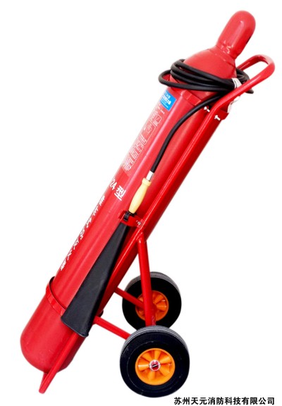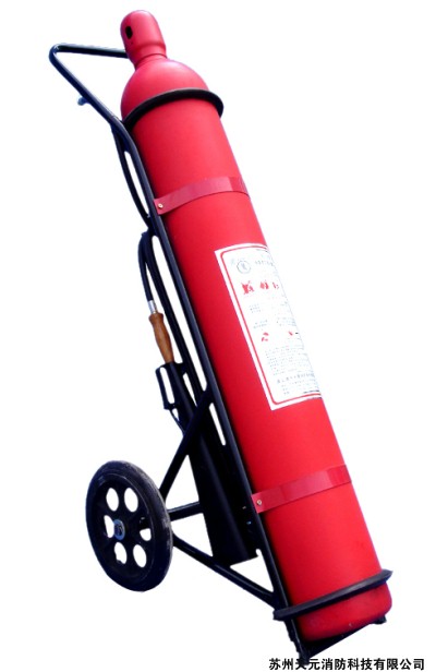 该灭火器主要由瓶体、器头总成、喷管总成、车架总成等几在部分组成,内装的灭火剂为液态二氧化碳灭火剂。