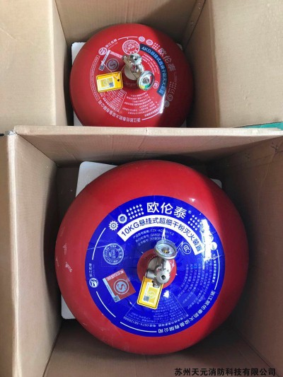 3.适用范围:本装置为独立单体,无管路、无电线,自动灭火,简单方便,可靠易安装,很适用于工矿企业的烘房、变电所、变压器室、物资仓库、船舶和各种试验室、油库、油漆仓等经常无人工作的地方。该产品经过国家消防装备质量监督检验中心检测均为合格产品. 一、性能及用途:悬挂式自动干粉灭火装置是一种无管路、无线路、结构合理的自动灭火装置。在设置的动作温度内自动开启喷射干粉灭火剂扑灭局部火灾。本装置为悬挂式,安装高度在2.5-3M的范围内灭火效率高,动作迅速,扑灭能力强。XZFTBL型适用予扑灭固体有机物质,可燃液体、气体和电气火灾。 二、型号规格与技术参数: 型号:XZFTBL-8灭火剂净含量(kg):磷酸铵盐干粉8kg储氮压力(20℃):1.2Mpa喷射时间(S):≤10动作温度(℃):47-93灭火级别/类型:≥18B ≥4A保护半径(M):≥1.07 ≥1.08外形尺寸:高度370 mm直径312mm 三、使用方法:1根据保护环境需要选择合适的始喷动作温度。一般宜用57℃。常温下仓库、油库采用68℃。高于常温的特定环境可采用79-93℃。2应安装在最易失火处上端。四、用户需知1、 装置使用温度:-10~+50℃.2、 用户必需定期(约半年)检查用维护.<一>检查压力表标示压力,如低于线区应卸下维修.<二>倒转罐体体摇动数次.3.;压力表标示压力低于绿线区或一经开启必须交资质合格厂商苏州天元消防设备有限公司维修再充装(充装前必须经2.48Mpa水压试验).